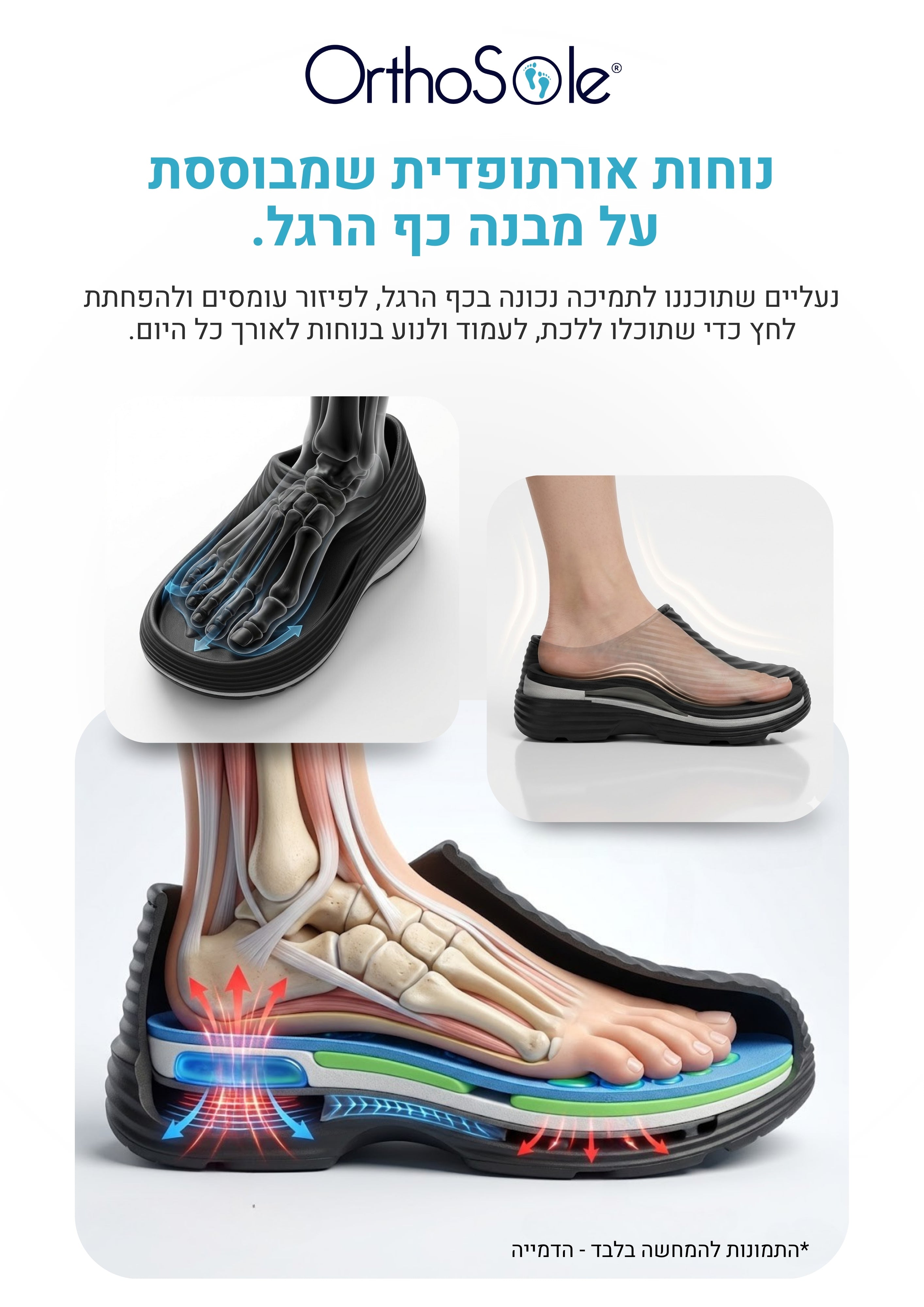 תמיכה חכמה בקשת – לנוחות מקסימלית כל זוג כולל מדרס אורטופדי מתוכנן בקפידה, התומך ביישור הטבעי של כף הרגל ומפחית לחץ לאורך כל היום. • מסייע בהפחתת עומס על הקשת, העקב והמפרקים • תורם לחלוקת משקל מאוזנת בכל צעד